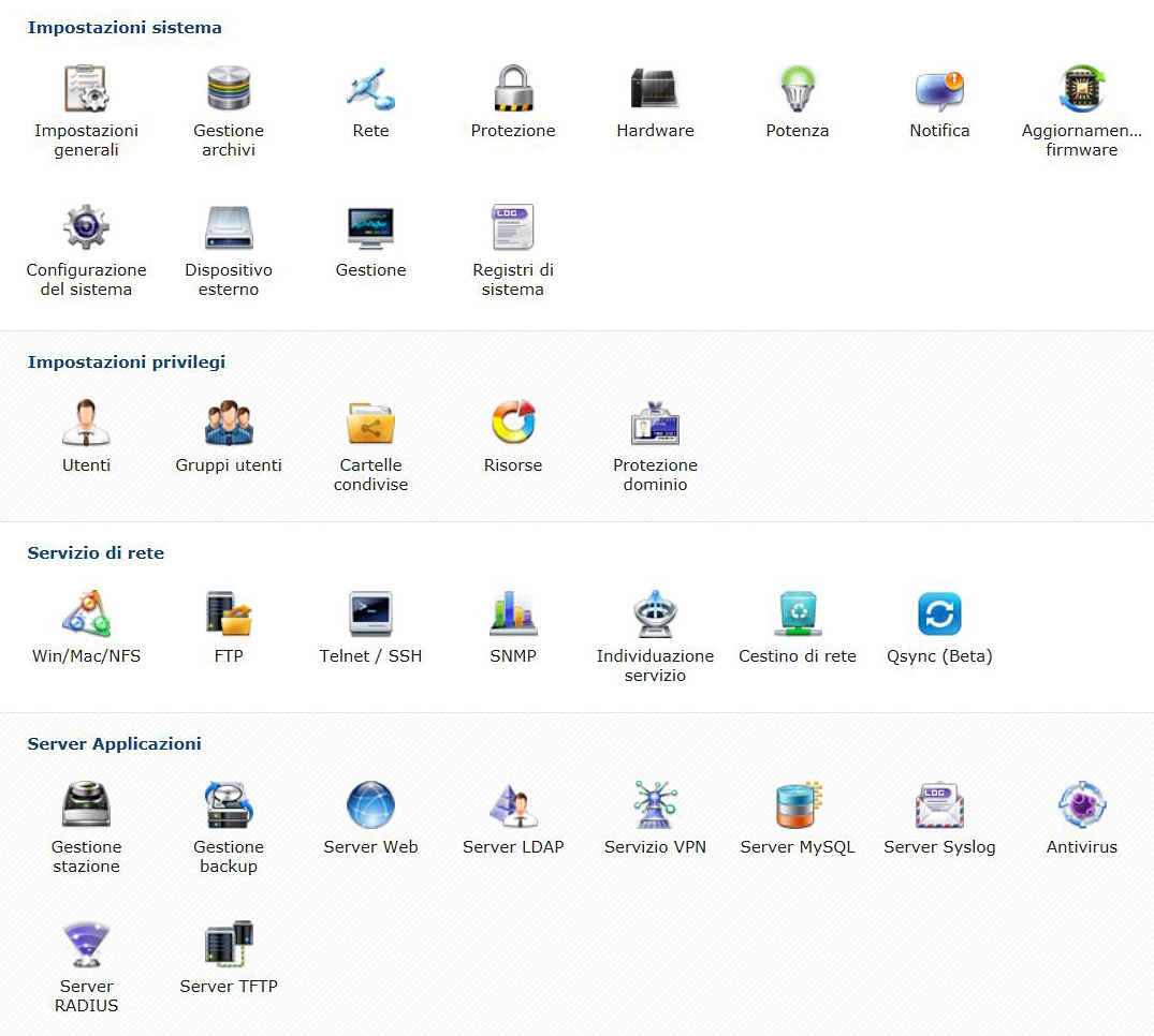 Terminata la fase di inizializzazione si accede immediatamente all’interfaccia grafica, tramite la quale è possibile modificare impostazioni e privilegi per gruppi e utenti, le condivisione e le permission, i differenti servizi di rete, la configurazione generale e tutti i server integrati. In generale abbiamo apprezzato i tempi di risposta contenuti e la velocità di reazione del sistema. L’impressione che si ottiene è analoga a quella di un utilizzo diretto di una interfaccia locale, senza eccessivi ritardi o latenze.