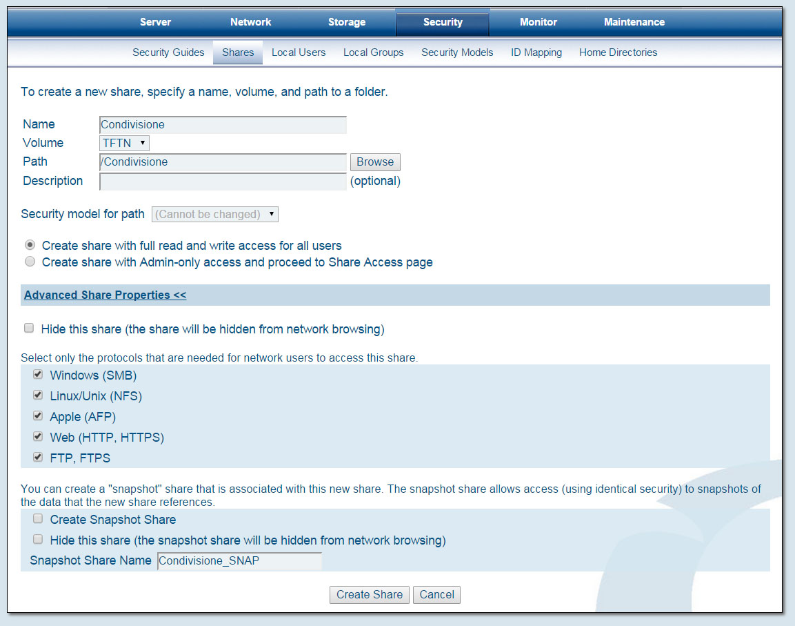 Per una maggiore sicurezza a livello di macchina, lo SnapServer XSD 40 mette a disposizione la possibilità di eseguire snapshot periodici in grado di preservare e aggiornare una copia del file system. Si tratta di un aspetto importante in ambito professionale, un particolare che consente di ripristinare rapidamente l’intera configurazione anche in caso di danni gravi.