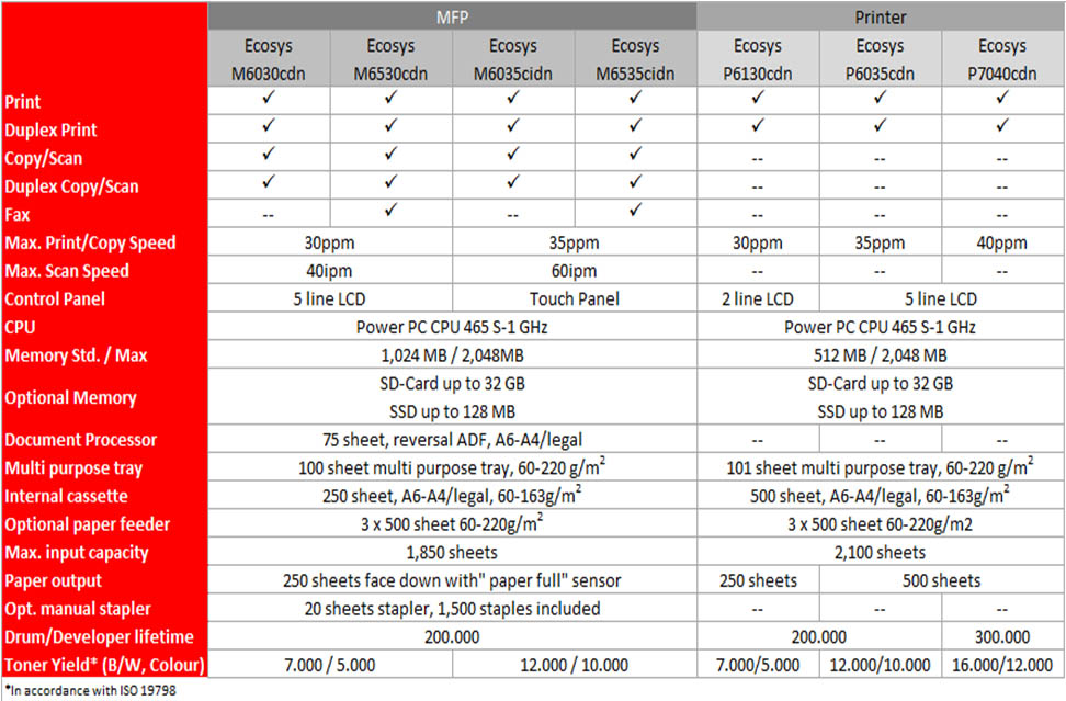 La tecnologia Ecosys è il comune denominatore integrato in ciascuno dei nuovi apparati, un’architettura che assicura risparmi sui costi operativi, grazie all’utilizzo di materiali a lunga durata e un tamburo da 300.000 pagine, in grado di diminuire gli sprechi durante l’intero ciclo di vita del prodotto.