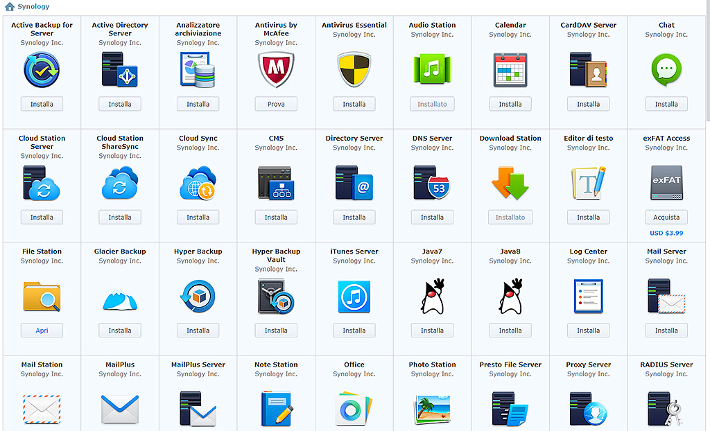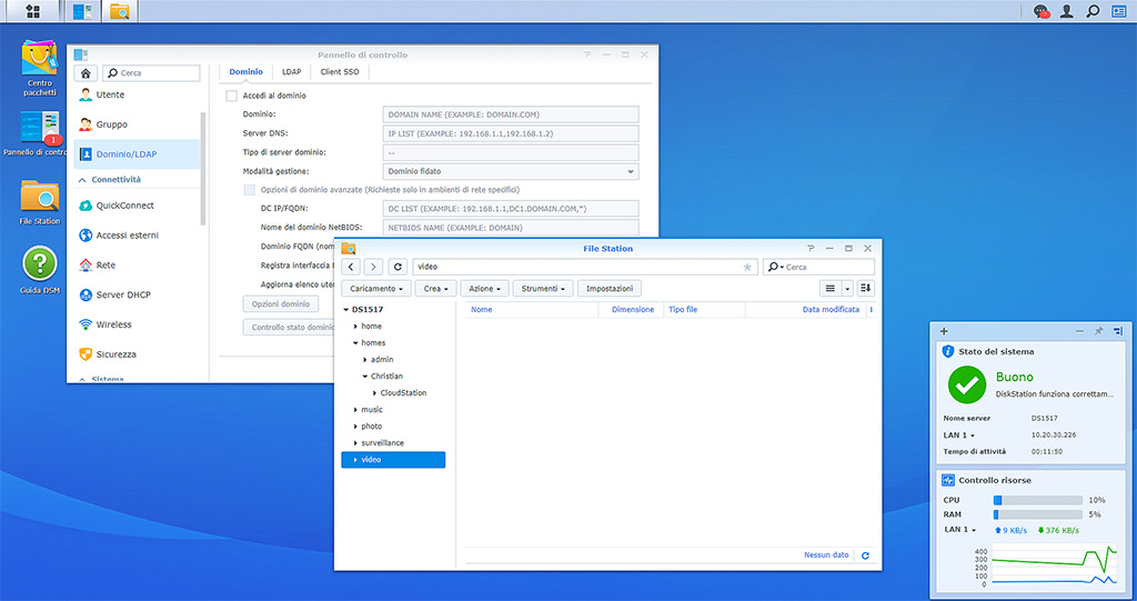 Synology DS1517+ è uno storage di rete evoluto, capace si assolvere a più compiti contemporaneamente, ben al di là della semplice copia dei dati e del backup quotidiano. Oltre alla capacità di supportare ambienti storage iSCSI e strutture virtualizzate, la macchina offre Cloud Station Server per la gestione di trasferimenti da/per cloud remoti, Download Station per amministrare l’approvvigionamento di file e cartelle dal Web. La macchina offre supporto VPN Server, Video Station e Surveillance Station, rispettivamente per la connessione sicura, la transcodifica dei video e l’orchestrazione di un massimo di 40 telecamere IP.