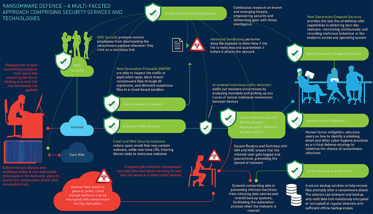 Il rischio è aumentato da quando la criptovaluta e il bitcoin sono diventati un metodo comune per il pagamento di riscatti. In questo modo, i criminali informatici non possono essere tracciati. Tale rischio si aggrava ulteriormente in virtù dell’aumento del numero di dipendenti che lavorano in remoto attraverso i propri dispositivi personali. L’intelligenza e la ricerca approfondita delle minacce sono fondamentali per superare in astuzia i criminali informatici e uno dei fattori di successo consiste nel riuscire a contrastare gli attacchi prima che impattino negativamente sul business. Ma i controlli sulla sicurezza da soli non sono sufficienti per indirizzare le minacce ransomware e le organizzazioni necessitano di adottare un approccio multi-livello per bloccare la catena dei cyber attacchi. Questo significa identificare le minacce emergenti prima di un attacco, una veloce identificazione, una risposta rapida a un attacco, fino al processo di backup e di ripristino. I recenti attacchi ransomware hanno posto l’accento sul fatto che sono necessari miglioramenti in ogni settore di mercato e nelle aziende di qualsiasi dimensione. Con framework, strumenti e processi appropriati, le organizzazioni saranno meglio strutturate per contrastare efficacemente gli attacchi ransomware.