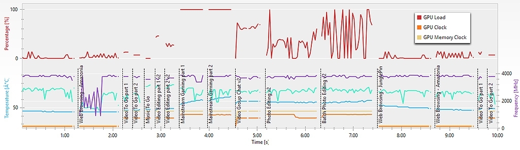 Le suite “Creative” e “Work” dei benchmark PCMark08 evidenziano il grande apporto della GPU nella attività quotidiane, rispettivamente +28% e +42%. L’accelerazione offerta consente di svolgere agevolmente operazioni quali la visualizzazione dei streaming in alta definizione, l’avvio di videochiamate e il rendering delle pagine Web.