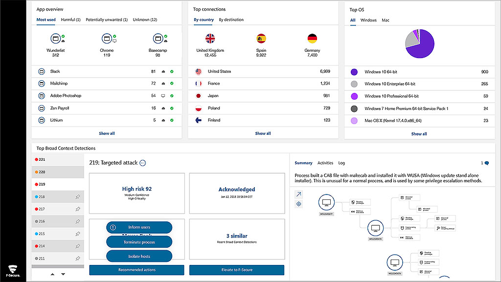 Questo processo di analisi – chiamato Broad Context Detection – si basa sull’approccio uomo più macchina di F-Secure per combinare elementi di potenziali minacce e comportamento anormale osservato attraverso gli endpoint per aiutare chi difende a validare minacce e verificare il loro impatto sulle operazioni di un’organizzazione.