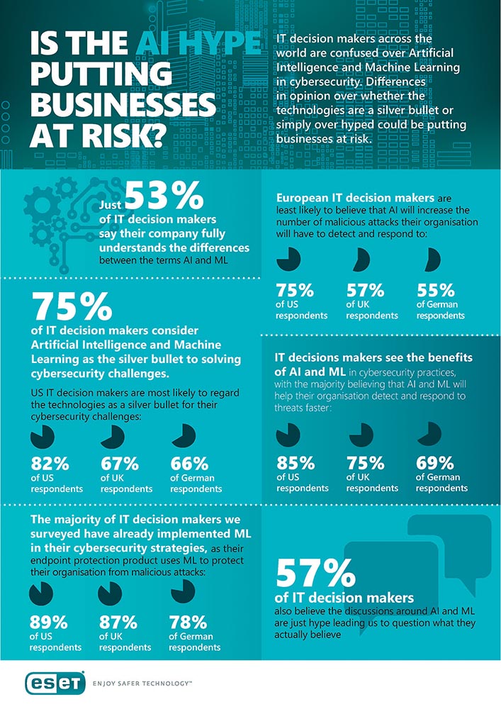 Tuttavia, secondo Eset, questa eccessiva fiducia nei confronti della machine learning e della artificial intelligence potrebbe mettere le organizzazioni a rischio di diventare vittime del cybercrime.