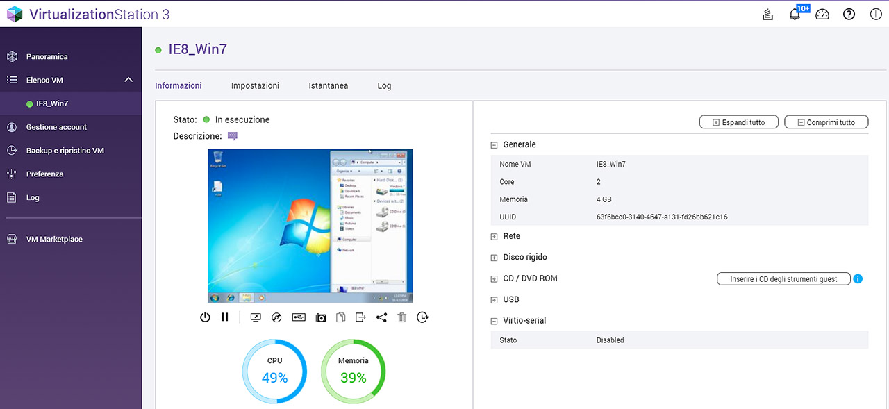 La CPU mostra il fianco solo se si abilitano più VM e virtual switch per la gestione di sottoreti e macchine con compiti specifici piuttosto pesanti (codifica/decodifica, accesso permanente a storage esterni).