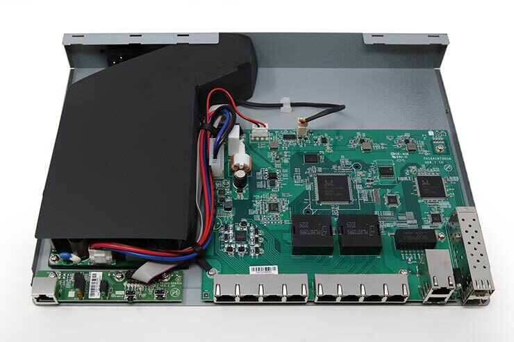 Lo chassis è in robusto metallo, in formato Rack 13” (con staffe addizionali per Rack 19”) ed è dotato di ventilazione attiva. Si tratta di un modello PoE 802.3af/at con un budget totale su otto porte di 130 W. La capacità di switching è di 24 Gbps, adeguata alla connessione di access point Wi-Fi 5 e Wi-Fi 6. Per poter operare rapidamente e gestire il flusso dati con continuità, questo modello è stato dotato di 256 MByte di SDRAM e di un memoria flash dedicata da 32 MByte.