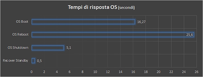Lo storage interno si esprime al massimo e offre performance in lettura e scrittura lineare fino a 2,46 GByte/s e 1,73 GByte/s, rispettivamente. Ampio merito della fluidità di lavoro è da imputare al comparto solid state, che permette di avviare il PC in meno di 17 secondi. Il recovery da standby è pressoché istantaneo, mentre per un reboot completo occorrono, in media, 25 secondi.