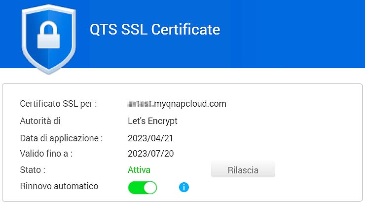 L’acquisizione del certificato SSL può avvenire gratuitamente tramite servizio Let’s Encrypt, oppure a pagamento tramite i servizi QNAP.