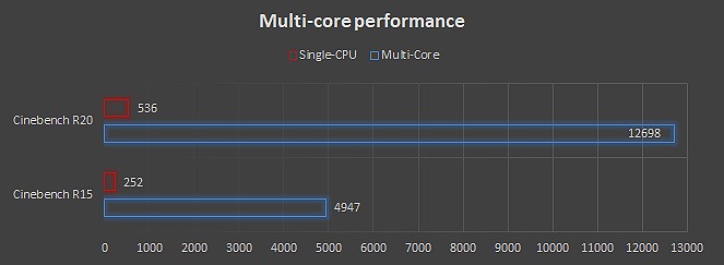 L’elevato numero di core e thread a disposizione consente di accelerare nettamente il calcolo parallelo, con un incremento tra 19x e 23x rispetto al calcolo single core.