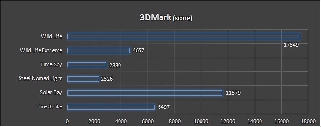 I benchmark 3DMark sono eseguiti con un buon grado di dettaglio e capacità di rendering ottimali, nel caso di scenari e primitive di complessità medio-bassa: