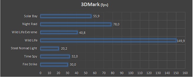 La GPU integrata offre prestazioni di rilievo lavorando sino a 1080p, con frame rate medi di 58,1 fps nei differenti test 3Dmark indicati per questo tipo di architettura e in rapporto alla risoluzione dello schermo. Scenari con primitive e geometrie particolarmente complesse sono comunque rappresentati con velocità di 20/30 fps, mentre gli ambienti più semplici beneficiano di una notevole accelerazione, sino a 149 fps.